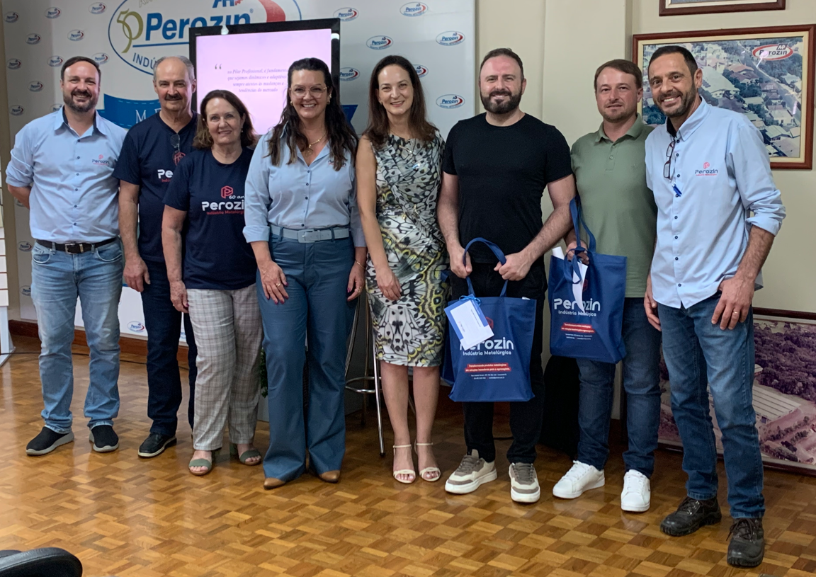 Outro momento marcante foi a palestra de Wagner Casagrande, CEO da Concórdia Informática e da Fort Distribuidora, parceiro fornecedor da Perozin Indústria há mais de 20 anos (representando todos os fornecedores). Especialista em negócios e gestão empresarial, Wagner compartilhou reflexões sobre mercado, inovação e comportamento, reforçando a necessidade de constante atualização, adaptação às mudanças e persistência na busca por objetivos. Sua fala trouxe inspiração e provocou reflexões importantes para toda a equipe.