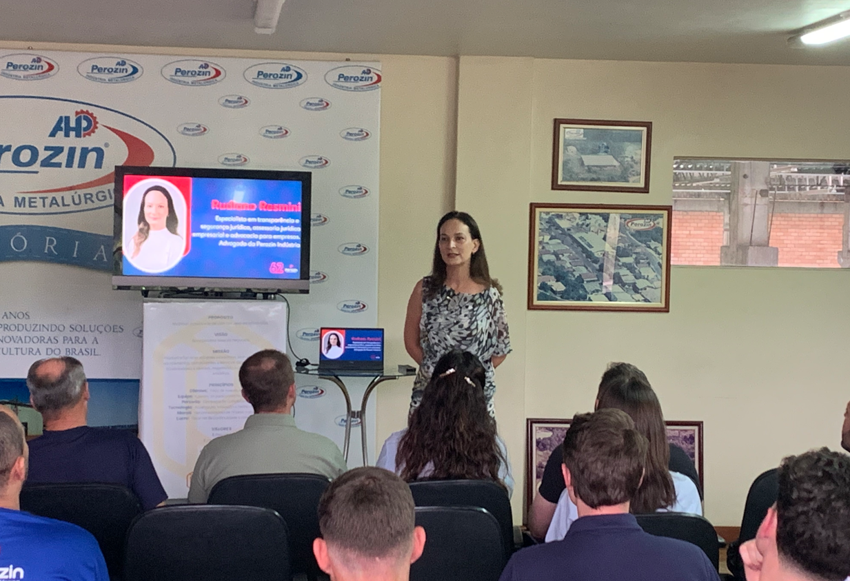Entre os destaques da programação esteve a advogada Sra. Rudiane Resmini, especialista em transparência, segurança jurídica e assessoria empresarial, que atua como advogada da Perozin Indústria (que no evento representou todos os prestadores de serviço da empresa). Em sua fala, Rudiane compartilhou experiências vividas ao longo de sua carreira, destacando que, em muitos cenários de crise, empresas optam por atalhos e que Perozin não é uma delas, “-Faz o que é certo”. Também, ressaltou como, ao longo dos anos de parceria com a Indústria, pôde vivenciar uma cultura rara no mercado: a valorização genuína dos colaboradores, sempre colocados em primeiro lugar.